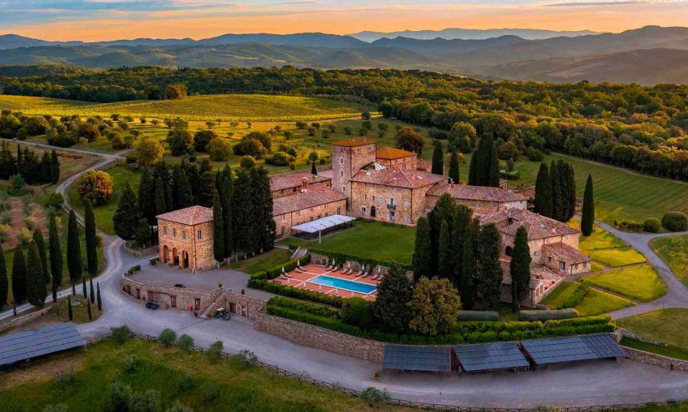 Iconic castle-wine resort, center of the Salieri estate, with two pools, spa, golf course, Michelin-starred restaurant, and historic Chianti Classico winery. Offers exclusive experiences: tastings, treatments, and historic tours.