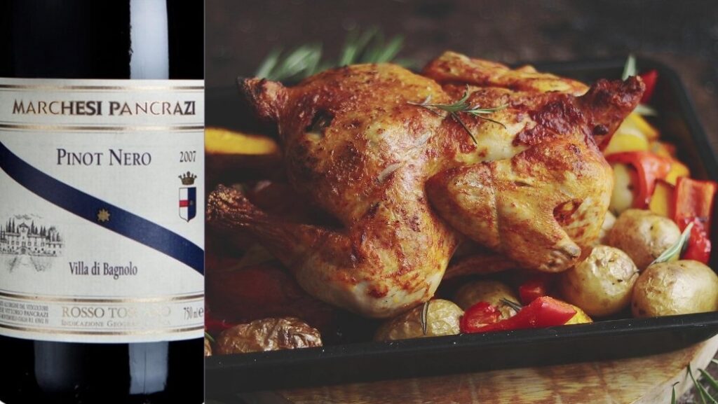 Examples include wine and roast chicken pairings, wine and Curry Chicken pairing or wine pairing and Chicken Cacciatore, wine pairing and Fried Chicken and many others.