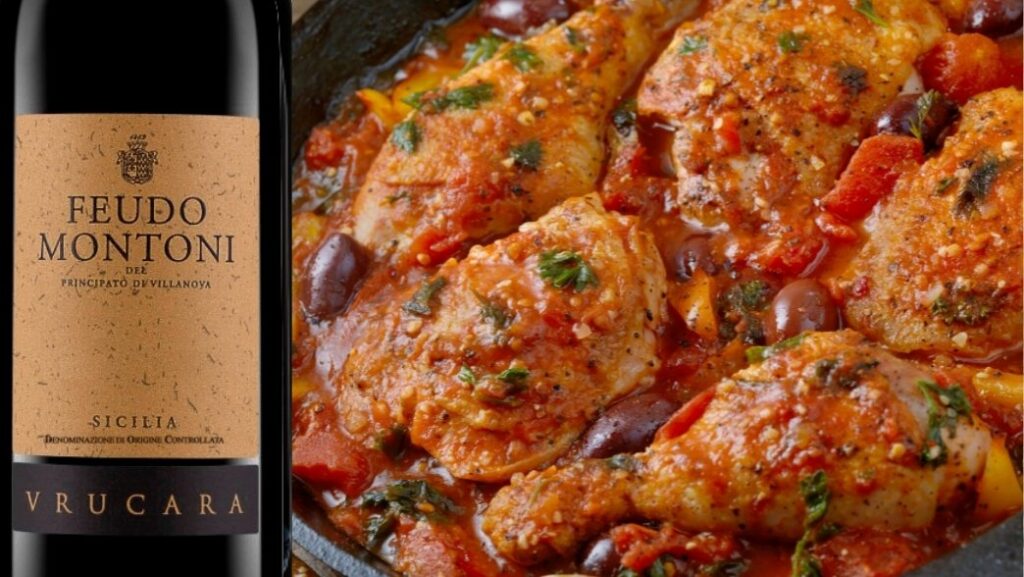 The intense aromas and the good structure of the Sicilian wine Nero d’Avola are an infallible wine pairing with chicken. Try this wine paired with Chicken Cacciatora.