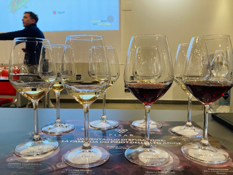 Come si comporta la famiglia dei Pinot a differenti altitudini, su differenti versanti e in differenti terreni? Ma soprattutto, ci sono analogie? Con la delegazione fiorentina della Fisar, il Consorzio Vini Alto Adige ed Eros Teboni (Sommelier Professionista, Comunicatore e vincitore del concorso WSA “Best Sommelier of the World”) abbiamo messo a confronto due diverse etichette per ogni “tipologia” di vino: Pinot Bianco, Chardonnay, Pinot Grigio e Pinot Nero.