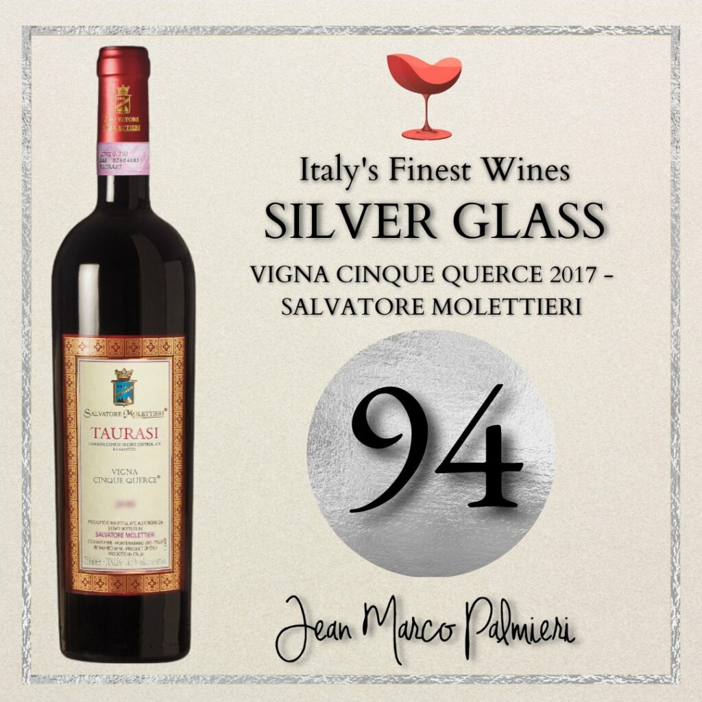 Un Taurasi denso e succosissimo, concentrato e balsamico, di grande persistenza.