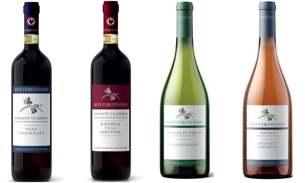 La gamma dei vini di Monterotondo è articolata in 4 etichette: il fresco e profumato Chianti Classico ‘Vigna Vaggiolata‘, ottenuto da Sangiovese, Canaiolo e Malvasia Nera, ottenuto da lunga macerazione e affinamento di 2 anni in botti grandi di rovere, il più complesso e intenso Chianti Classico Riserva ‘Vigna Seretina’ da e Sangiovese e Malvasia Nera provenienti dalla pregiata vigna Seretina esposta a sud su un terreno ricco di Galestro.