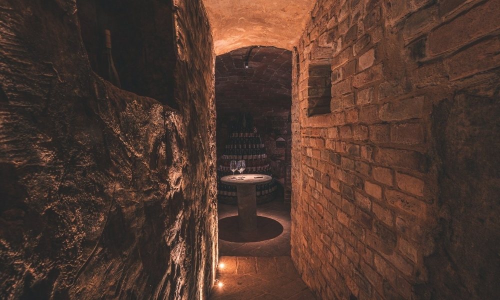 Per realizzare il loro progetto venne dato inizio alla costruzione della cantina: dai locali della storica villa, la cantina si estende in sotterranea per tutta la lunghezza della casa. Una struttura nascosta di mille metri quadrati progettata con il preciso intento di preservare la natura del luogo originario e dotata delle più moderne tecnologie enologiche.